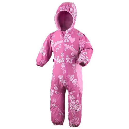 The 80-gram insulation in the Columbia Infant Girls? Mazzy Munchkin Snow Suit provides just the right amount of warmth for a baby girl with a busy life. Warm enough for when she is riding around in a baby backpack on snowy trails, it isn?t so bulky that she?ll overheat when she?s being toted in and out of stores in her car seat. Fleece lining in the hood keeps her extra cozy, while nylon taffeta in the body helps the suit slide on easily.